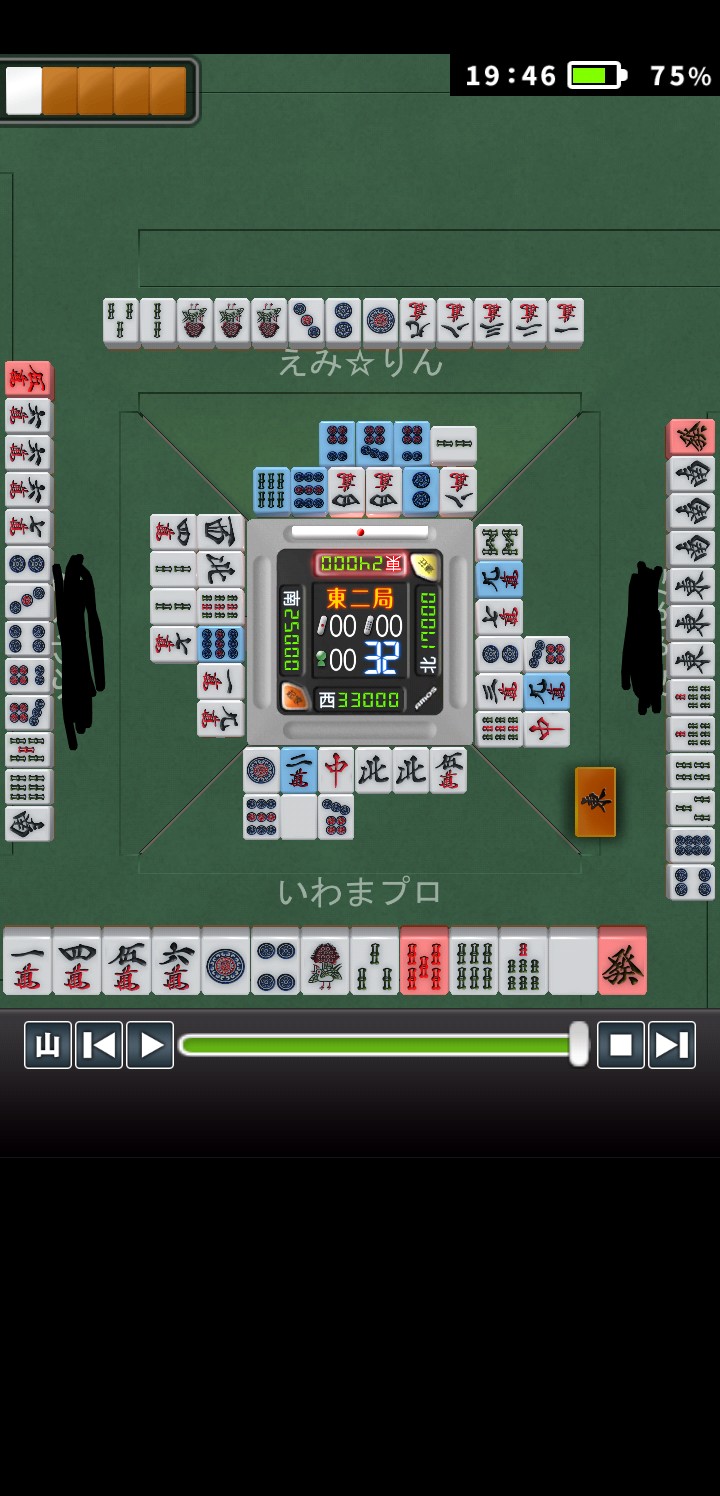 結果的には3pで和了れて、24000だったんですが、リーチってホントに諸刃の刃ですよね。